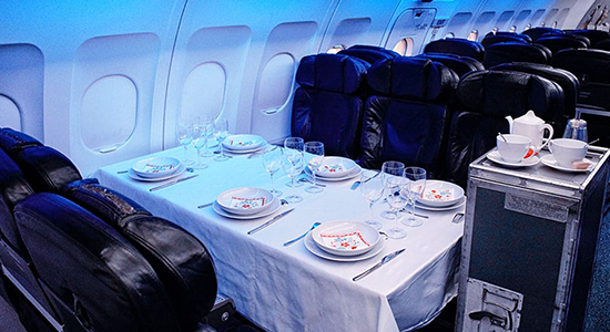 Vous avez déjà pris l’avion de ligne mais… en avez-vous déjà privatisé un pour un déjeuner d’affaire ou un team bulding? Notre Airbus A319 recyclé offre un cadre original pour tous vos événements professionnels et pour tous vos événements privés d’exception ! Il y a 3 dispositions de sièges possibles : en vis à vis (6 tables de 6), classique (cinéma, formations) et banquet (table de 9m de long). Réservez votre créneau dès maintenant!