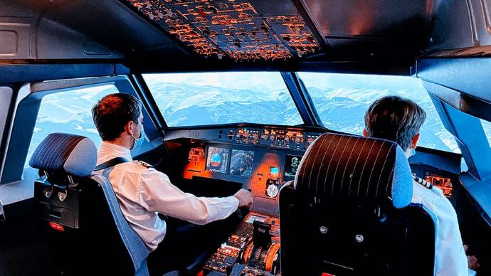Séance de perfectionnement à la simulation de vol avec des moniteurs pilotes de lignes sur Airbus a320.